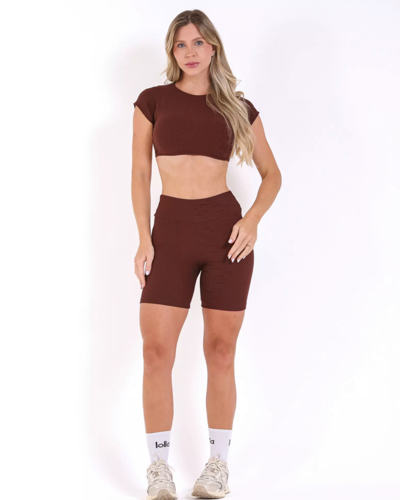 Por isso, o conjunto fitness é o melhor amigo das baixinhas. Além de prático, ele é a estratégia visual mais inteligente para ganhar altura.